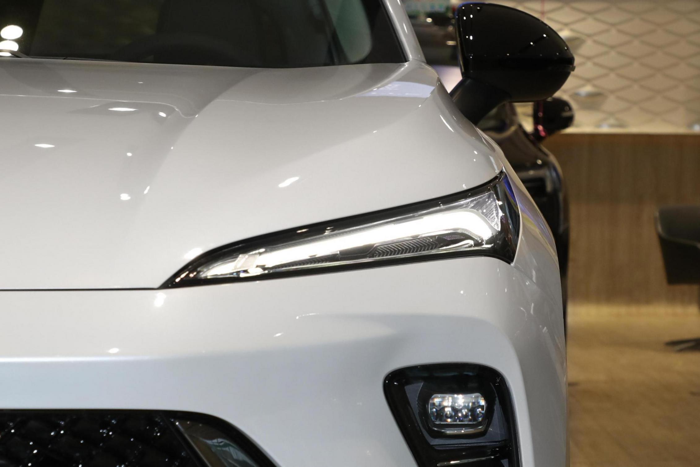 新款昂科威S的外觀換成了家族最新設(shè)計(jì)語言,車頭和別克昂揚(yáng)十分相似,車標(biāo)放在了機(jī)蓋前端位置,前臉采用黑色中網(wǎng)進(jìn)氣格柵,兩側(cè)有著類似獠牙般的鍍鉻裝飾,分體式大燈看起來很個(gè)性,上方狹長的為LED日間行車燈,前包圍兩側(cè)區(qū)域則是LED遠(yuǎn)近光。