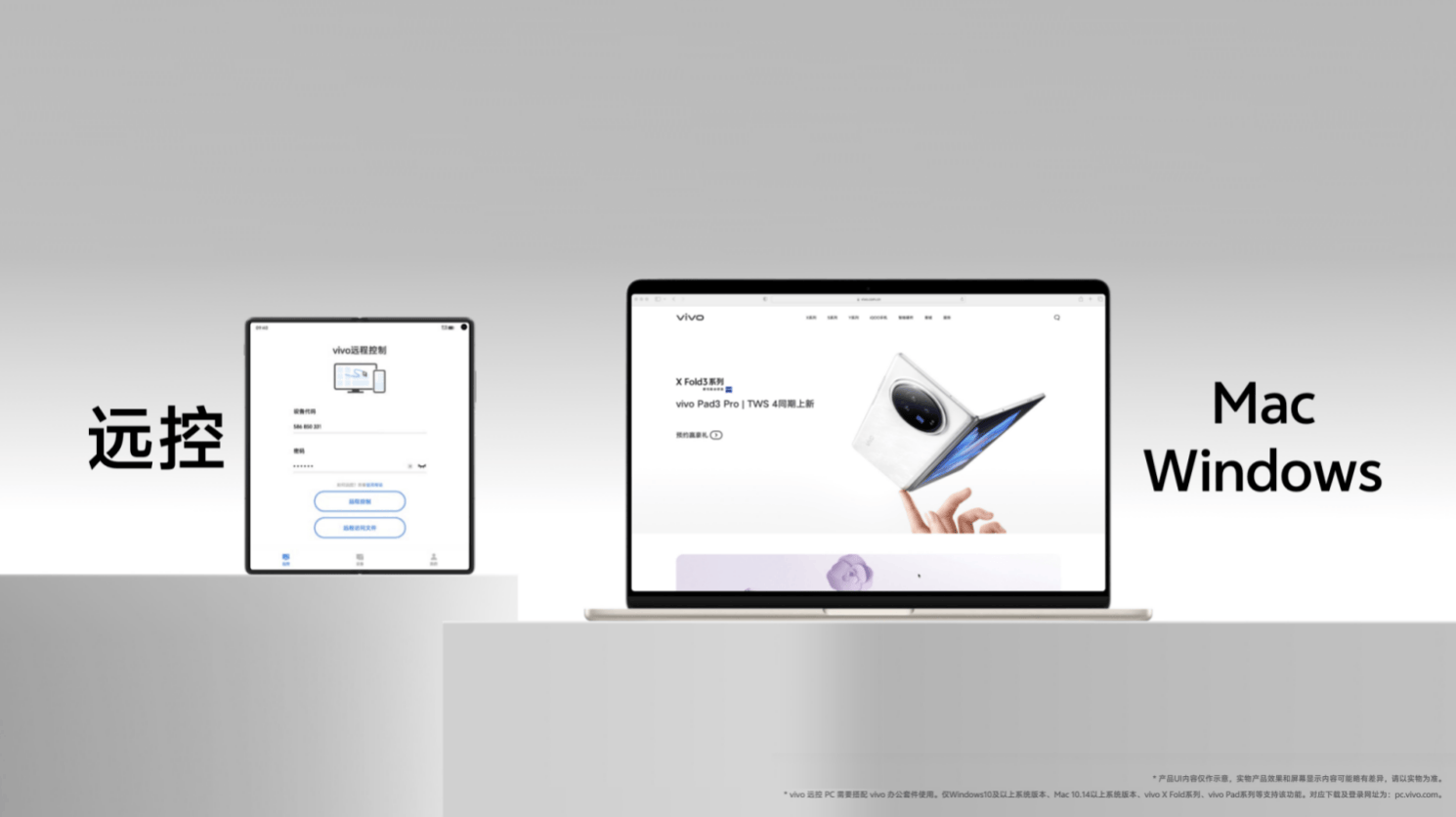 舉個例子,現在的vivo遠控PC支持連接Mac電腦,遠程訪問PC文件,并可遠控電腦界面投屏到電視屏幕,還可以利用電腦的性能處理一些要求高的任務,再比如,vivo萬能文檔可打開蘋果Pages、Numbers、Keynote三件套,更支持CAD、PSD、Xmind等57種專業文件格式,拓展手機上的辦公能力。