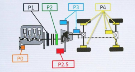 這里值得一提的是,在PHEV的命名規(guī)則中,“P”代表電機(jī)(Power),其后的數(shù)字則指示電機(jī)安裝在變速箱的哪個(gè)軸上。例如,P1+P3方案中,兩臺(tái)電機(jī)分別安裝在第一軸和第三軸上;而P2方案中,電機(jī)則安裝在第二軸上。