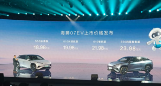在發布會上,比亞迪推出四款海獅 07 EV可選,價格區間為18.98-23.98萬,光看價格可能大家沒有感受到什么驚喜,但當你了解了海獅 07 EV的技術實力后,你就會發現 e平臺3.0 Evo與海獅 07 EV的強大內核。