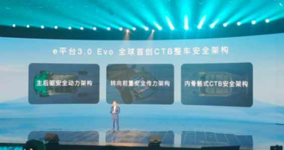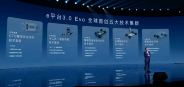先說 e平臺3.0 Evo,它涵蓋五大技術集群、12項全球首創硬核技術,在發布會上光講解這些技術就花了近1個小時,而這些海獅 07 EV均有搭載,這也使得其擁有了更安全、更高效、更智能的產品力表現。