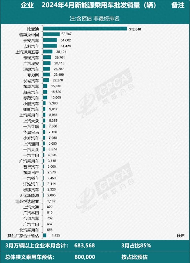 近日,乘聯會發布了2024年4月新能源乘用車批發銷量預估排行,從銷量排行看,自主車企名列前茅,隨后是不少新勢力品牌,除了特斯拉排在第二,各大合資品牌在新能源乘用車發展方面依然比較緩慢。