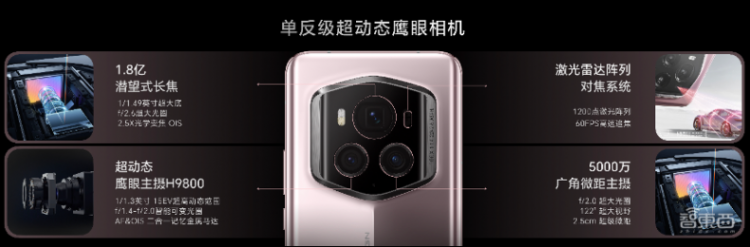 在快速對焦方面,激光雷達陣列對焦系統中激光陣列達到1200點,對焦速度達到60幀每秒,這同樣實現了單反級對焦體驗。