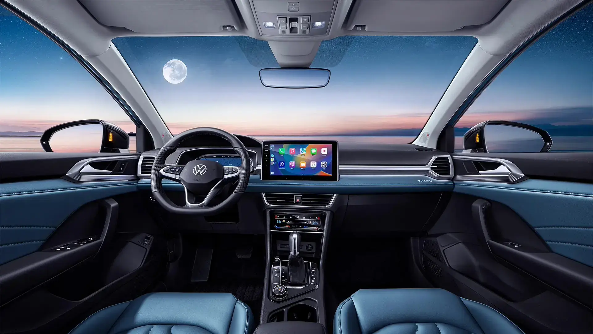 車內采用對稱式布局,中控臺采用傾斜式設計,更加有利于駕駛員觀感,方向盤采用多功能的三輻式方向盤,前方儀表盤采用8/10.25英寸的嵌入式設計,中控屏也采用8/12英寸的兩種大小,內置MOS智慧車聯系統,支持車聯網、語音識別控制系統等功能。