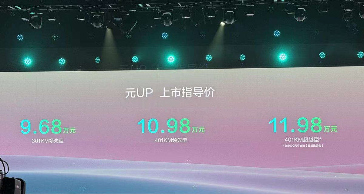 在海豚、元Plus等幾款車型取得了巨大的市場成功之后,比亞迪又開始進一步布局10萬級新能源細分市場了。近日,比亞迪旗下全新小型SUV,元UP正式上市,新車共推出3款配置車型,價格區(qū)間為9.68-11.98萬元。
