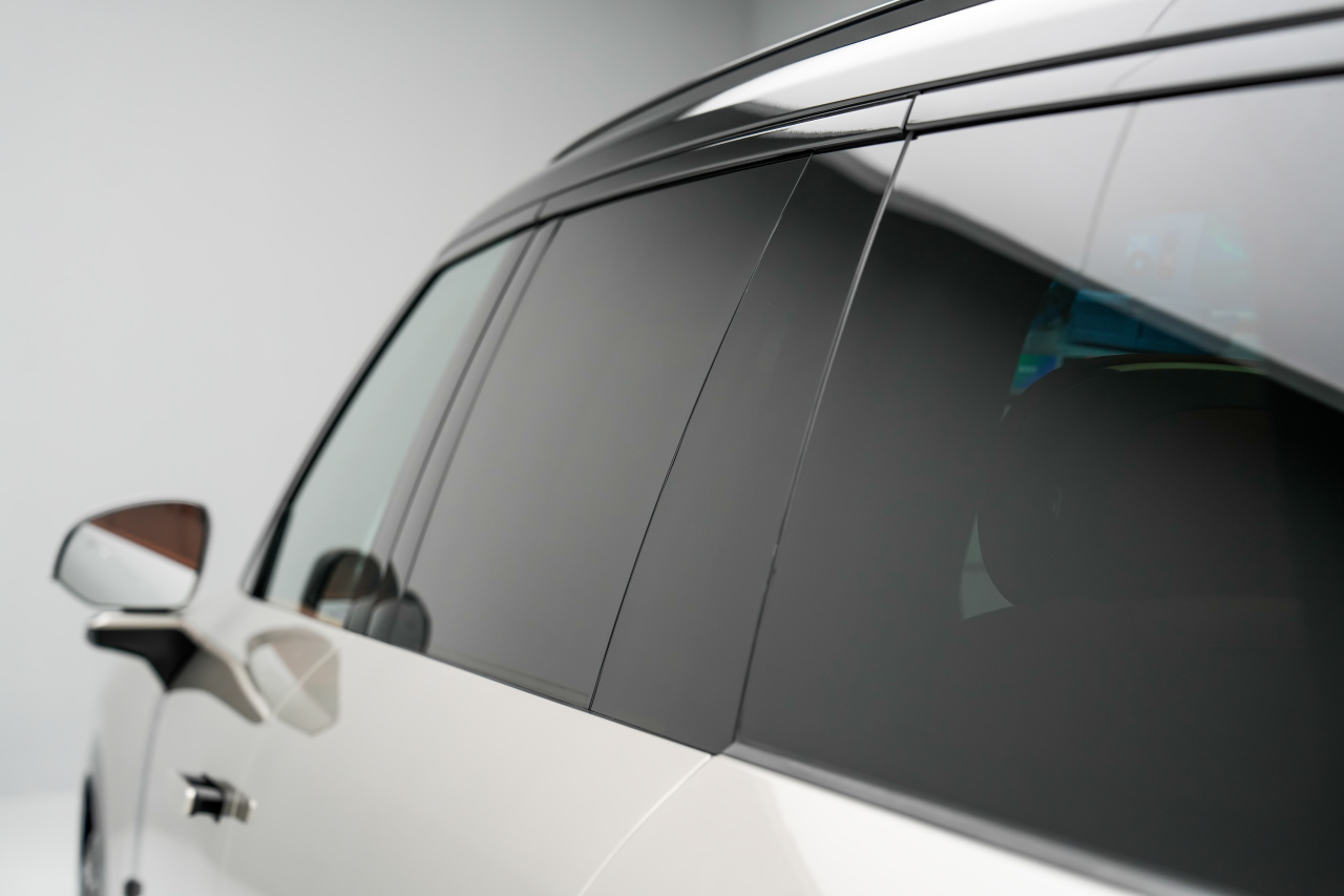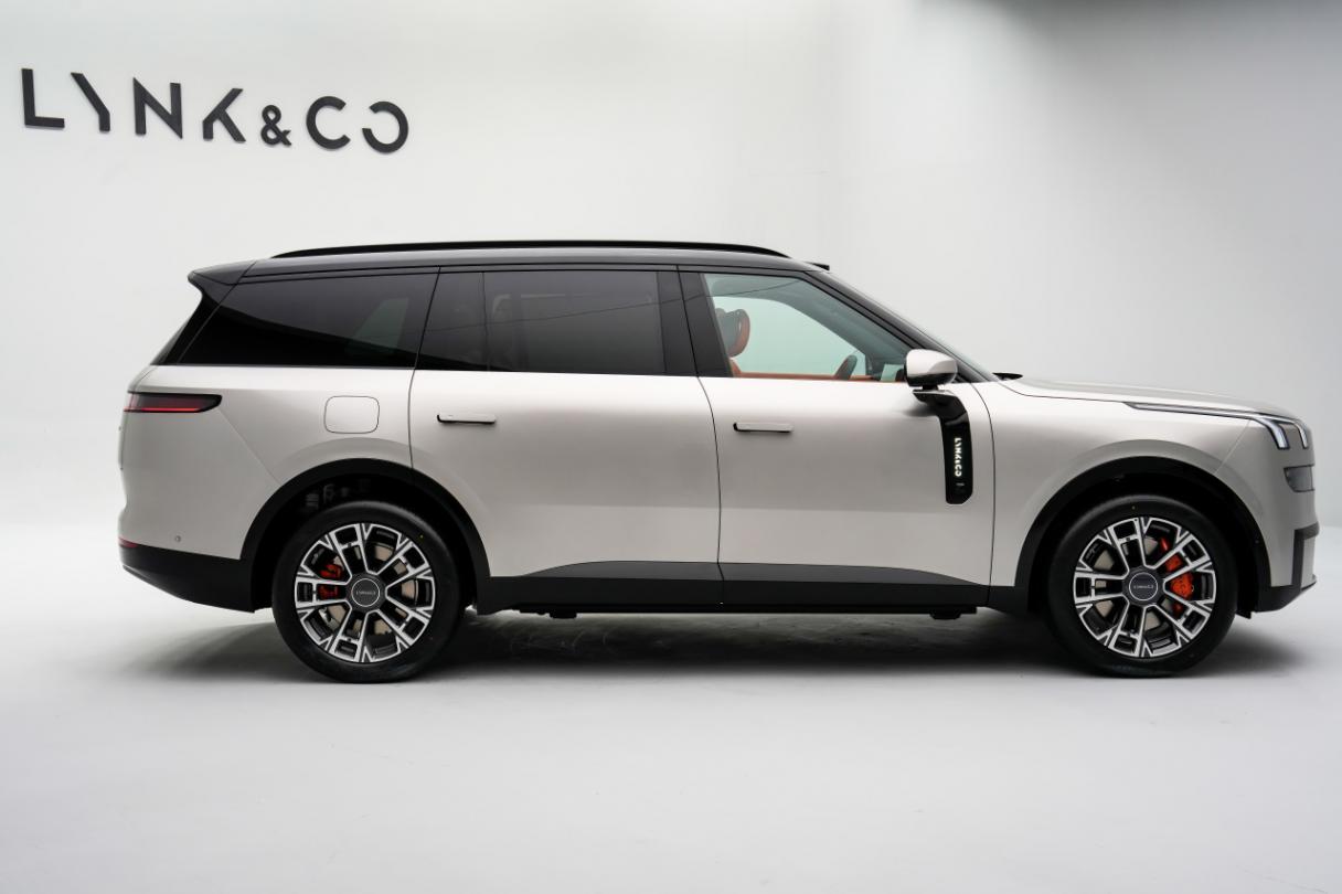 5、 側(cè)面設(shè)計(jì)也主要是以型面為主,有隱藏水切,突出領(lǐng)克900的純平感,比如上半部分采用了Flush Door 2.0設(shè)計(jì),從A柱到D柱都是純平設(shè)計(jì),有很好的光影效果。