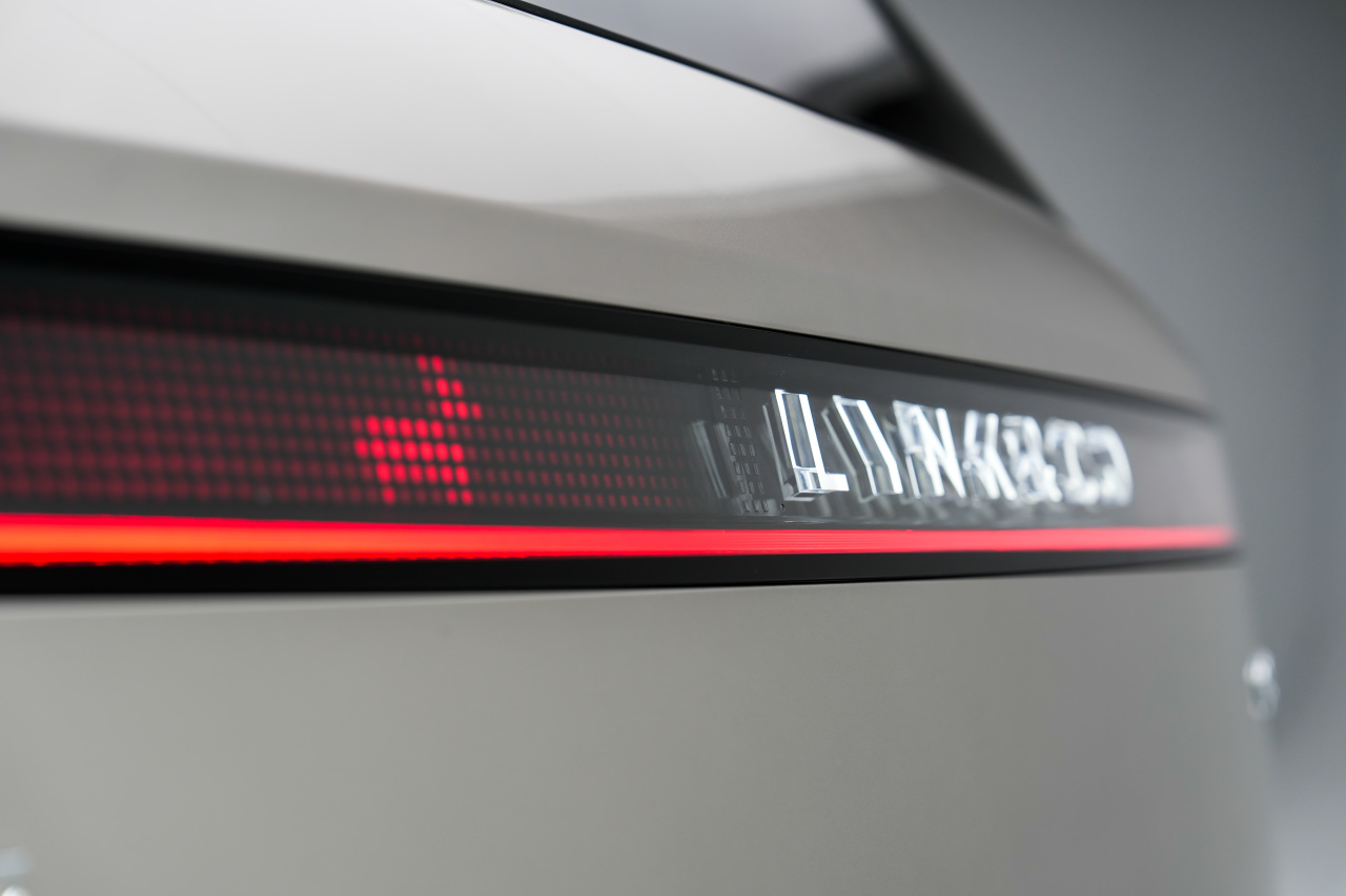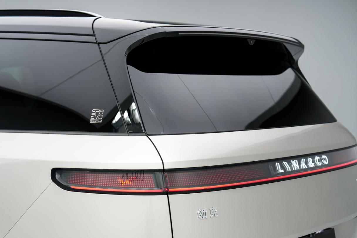 7、 尾燈同樣是貫穿式燈組,但不再是領(lǐng)克THE NEXT DAY概念車上那種纖細(xì)燈組,而是回歸了寬幅設(shè)計(jì),這是因?yàn)槲矡粢廊惶峁?shù)字像素交互功能,可以根據(jù)情景切換樣式。