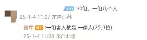 對此,雷軍回復稱:“一組客人就是一家人(2到3位)。”