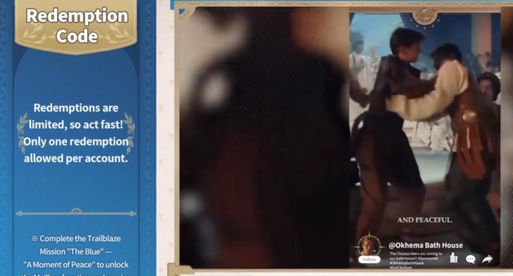 這事還得從星穹鐵道3.0版本前瞻直播說起,每次前瞻直播都會給玩家發布星瓊兌換碼,這次兌換碼的小窗口突然出現了大地獸的蹄子……緊接著就開始擦蹄子、修理蹄子的畫面,這是致敬國內相當火的“修蹄子”視頻呢!