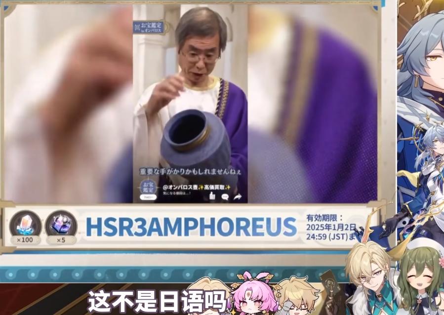 而日本區同一時間播放的土味短視頻則是請來了日本當地的演員,同樣是鑒寶類型視頻,不過融入了日本當地流行的“萬物鑒寶”梗,熟悉的日語還讓看直播的日本區玩家精神一振: