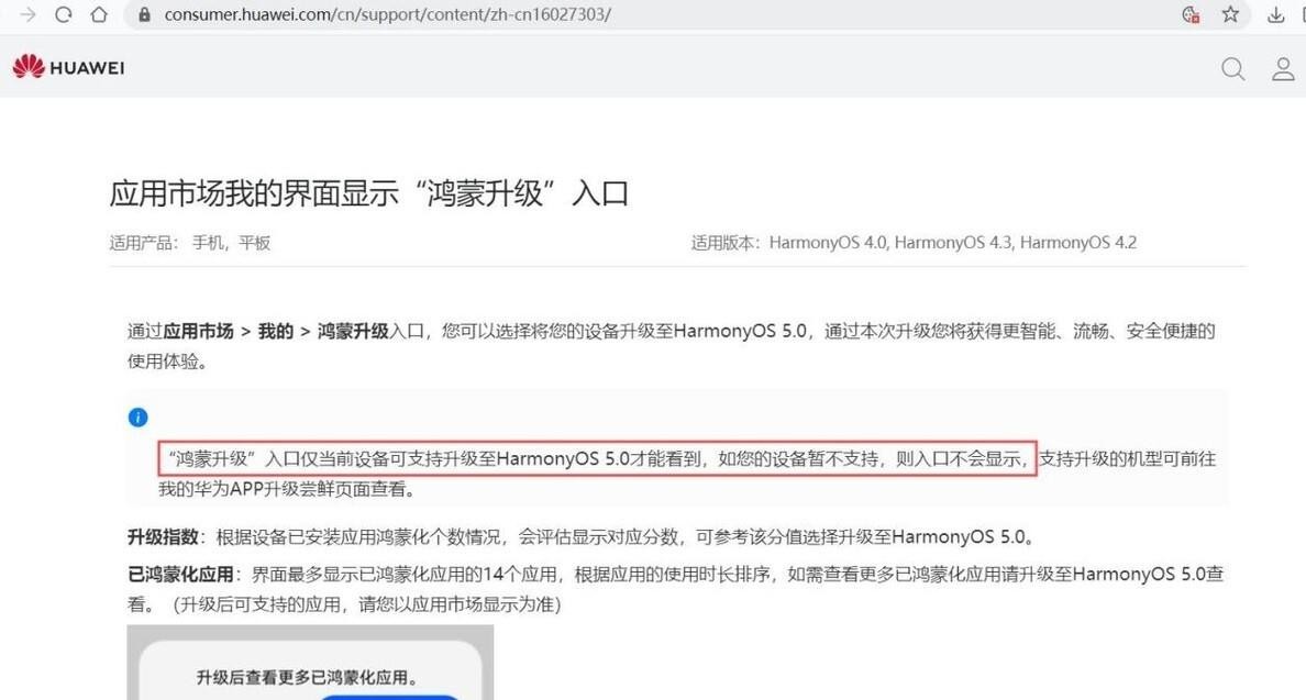 有意思的是,我注意到華為在處理未支持機型時也很有技巧。 它沒有直接說"你的設備不能升級",而是采用了"暫不顯示入口"的方式。 這種溫和的表達方式,某種程度上也避免了給用戶造成過大的心理落差。