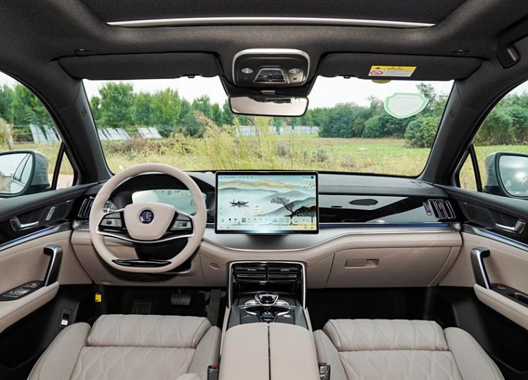 來到車內,如果把漢蘭達的內飾比做毛坯房的話,那么唐DM-i就是精裝房了,它的質感甚至趕上了豪華車的水平,整套內飾呈環抱設計,坐在里面讓有有種開游艇的感覺,車內用料基本都是以軟性材料和皮質包裹為主,并且點綴了大面積的亮黑色鋼琴烤漆,并且車內布局十分簡潔,大部分功能都集成在了15.6英寸的可旋轉中控大屏上,小巧的電子擋桿手感也很不錯。至于配置就更不用提了,這方面一直都是國產車的強項,朋友這臺雖然只是次低配,但該有的功能幾乎都有,包括L2級輔助駕駛、電尾門、座椅加熱通風、丹拿音響、31色氛圍燈等等。