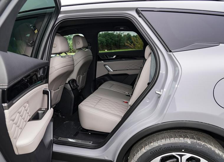 空間方面,唐DM-i和漢蘭達一樣,采用的也是7座布局,第二排座椅支持前后移動,調到最后面空間很寬敞,第三排臨時應急也沒有任何壓力,7座SUV的好處就是空間比較靈活,平時用不到第三排的時候就把座椅放倒當做后備廂使用,后兩排座椅都放倒就能得到“大床模式”,實用性還是非常不錯的。其實這臺唐DM-i最讓我羨慕的還是它的油耗和駕駛感受,和豐田的智能電混雙擎相比,比亞迪的第五代DM技術特別省油,百公里綜合油耗還不到6L,關鍵是還能使用純電行駛,一年下來油費又能省下不少,7.5秒的零百加速開起來也非常輕快。