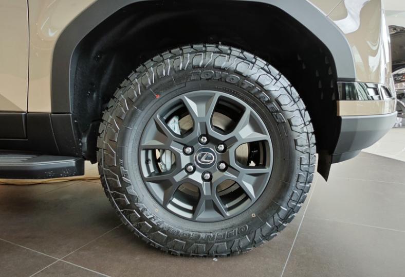 展車為中配,輪胎規(guī)格是265/70 R18,這是一套AT胎,有很深的花紋。輪轂采用六幅輪輞設(shè)計,經(jīng)過槍灰色噴涂,比較低調(diào)。