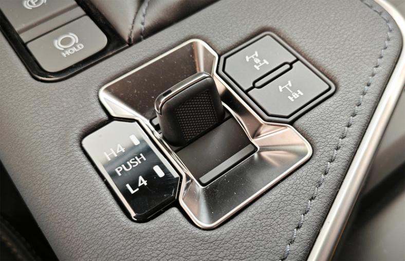 這個撥鈕以及右側(cè)的按鍵是越野神器,用來控制高速四驅(qū)、低速四驅(qū)、中鎖和后鎖的切換。