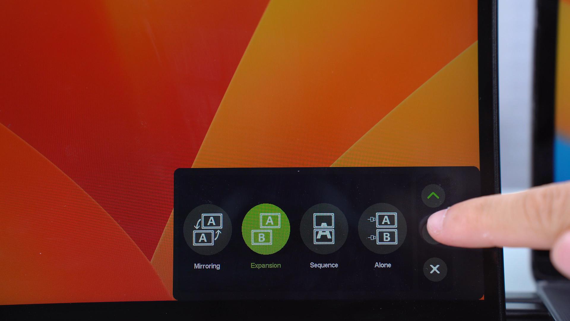 這四種模式切換,讓X2Pro在不同使用場(chǎng)景下都能發(fā)揮最大價(jià)值。而且上屏還能自動(dòng)旋轉(zhuǎn)畫(huà)面,只要把屏幕翻過(guò)去畫(huà)面就能自動(dòng)翻轉(zhuǎn),在互動(dòng)展示中非常好用。