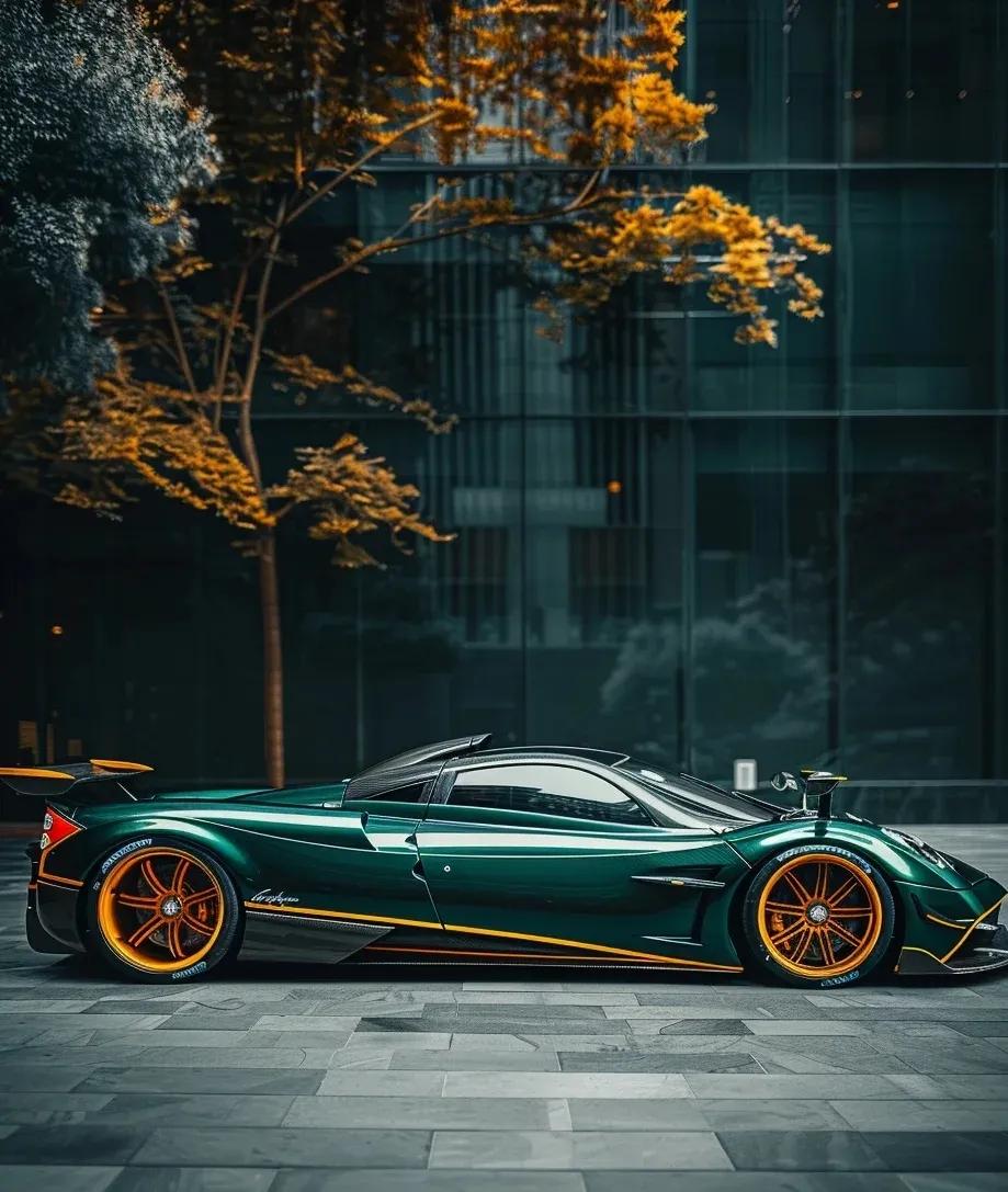 車身側面,Utopia的輪拱設計尤為引人注目,它們不僅完美包裹著巨大的碳纖維輪轂,更通過巧妙的曲線設計,將空氣動力學原理發揮到了極致。車尾部分,則是一副典型的帕加尼風格——簡潔而不失層次感,中央的巨型擴散器與兩側的排氣口相呼應,彰顯出車輛強大的性能潛力。