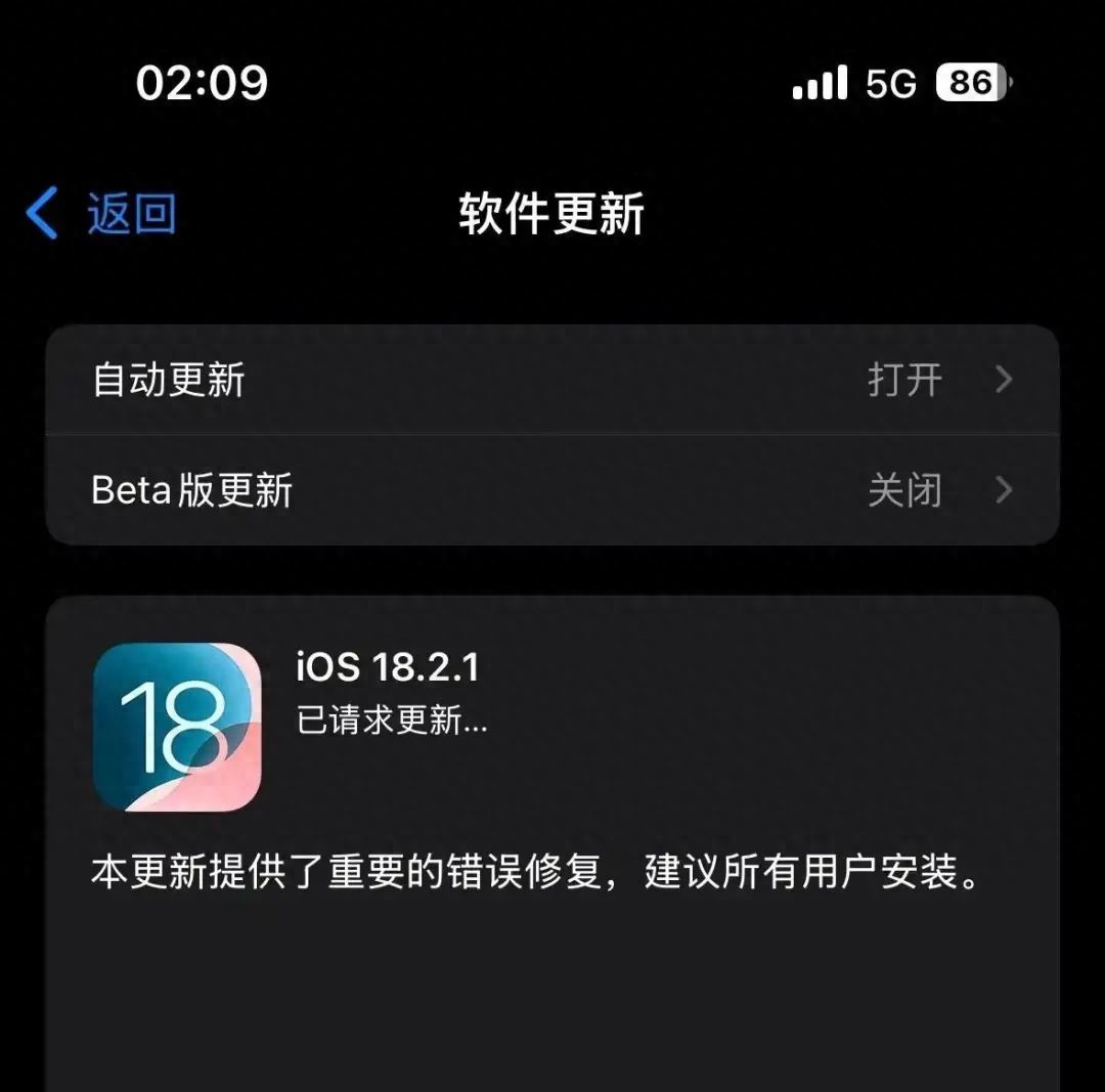 今天凌晨,蘋果發布了 iOS 18.2.1 正式版更新,與 iOS 18.2 更新時隔 26 天的時間,本次更新的版本號為:22C161.