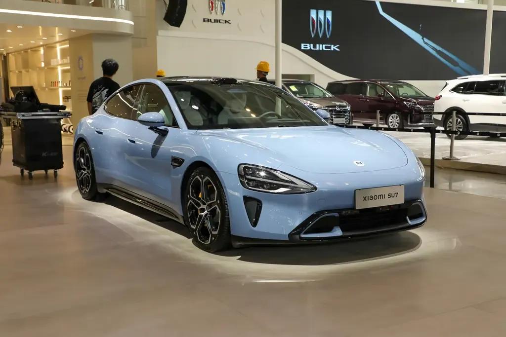 先看看 SU7 的前 45度照片,沒做任何后期處理。為啥呢?因為在 SU7 發布會前,網上就有人夸它的漆面效果好,所以我們特意這樣,讓大家在這種光線不太好的條件下,直觀感受下它的外觀。