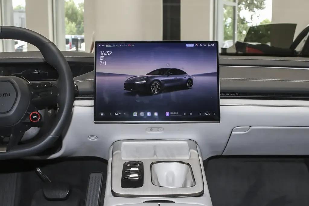 再看看內飾,乍一看和同級別大多數純電新車差不多,都是簡約風格。但仔細看,就能發現它和其他車不一樣的地方。比如方向盤,中間是英文版的“XIAOMI”LOGO,不是那個花 200 萬設計的圓形“MI”LOGO。