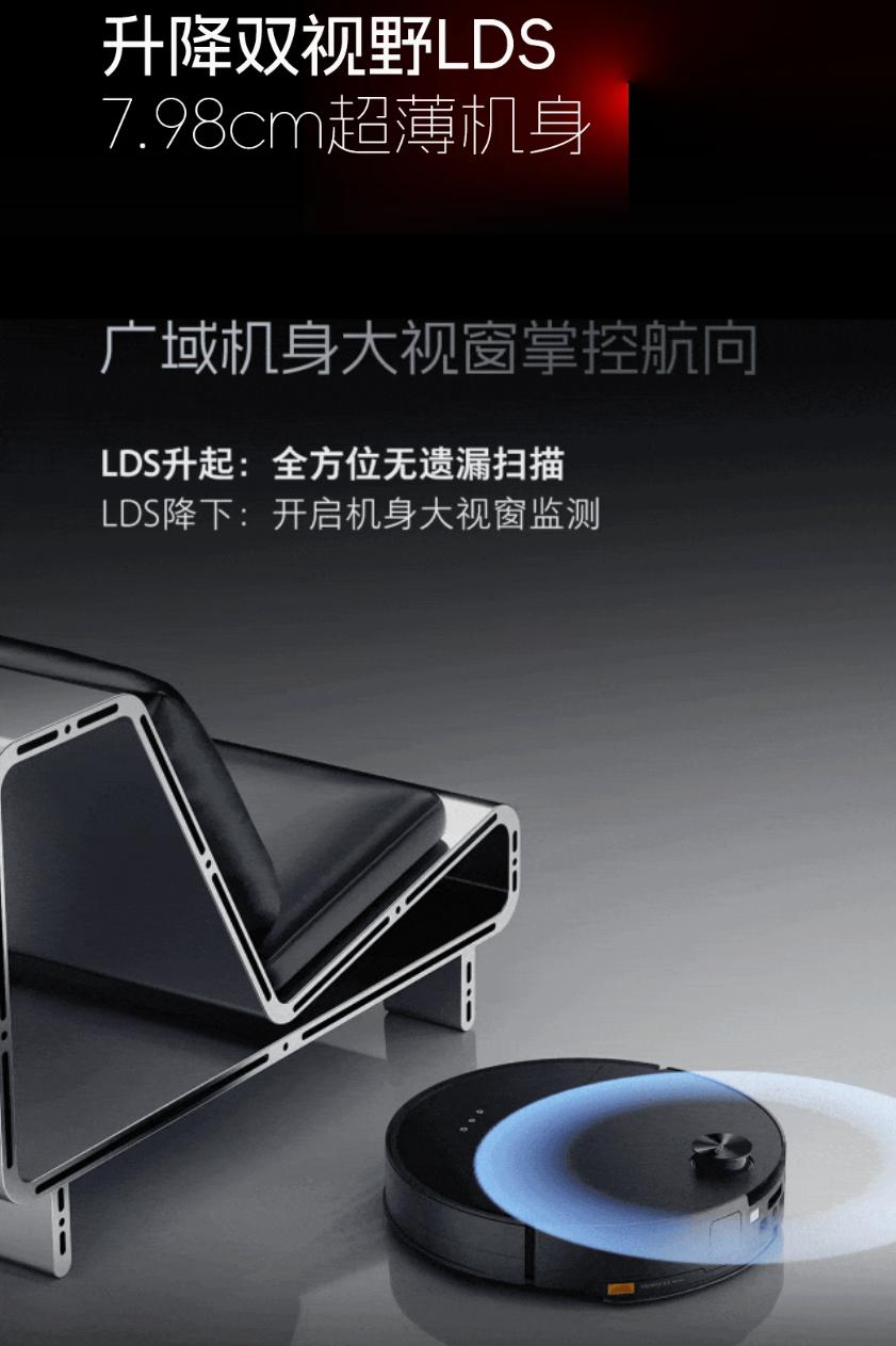 據介紹,石頭 G30 自清潔掃拖機器人吸力約 2.2 萬 Pa,機身厚度約 7.98cm,支持 LDS 升起(全方位無遺漏掃描)、LDS 降下(開啟機身大視窗監測)。