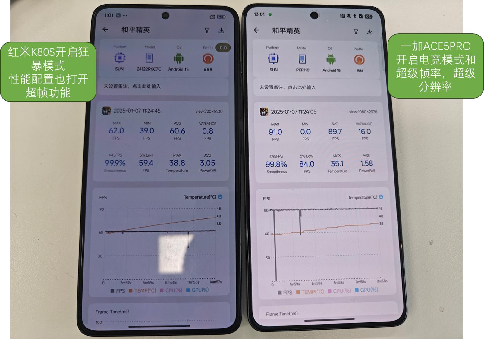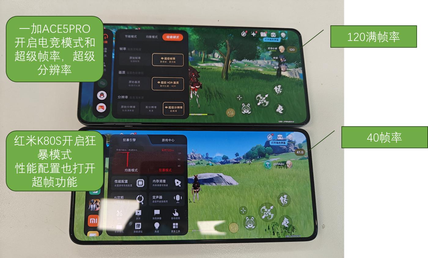 不過超幀率的功能都打開的時候,還是一加ACE5PRO的幀率要更高,畫質也更好。
