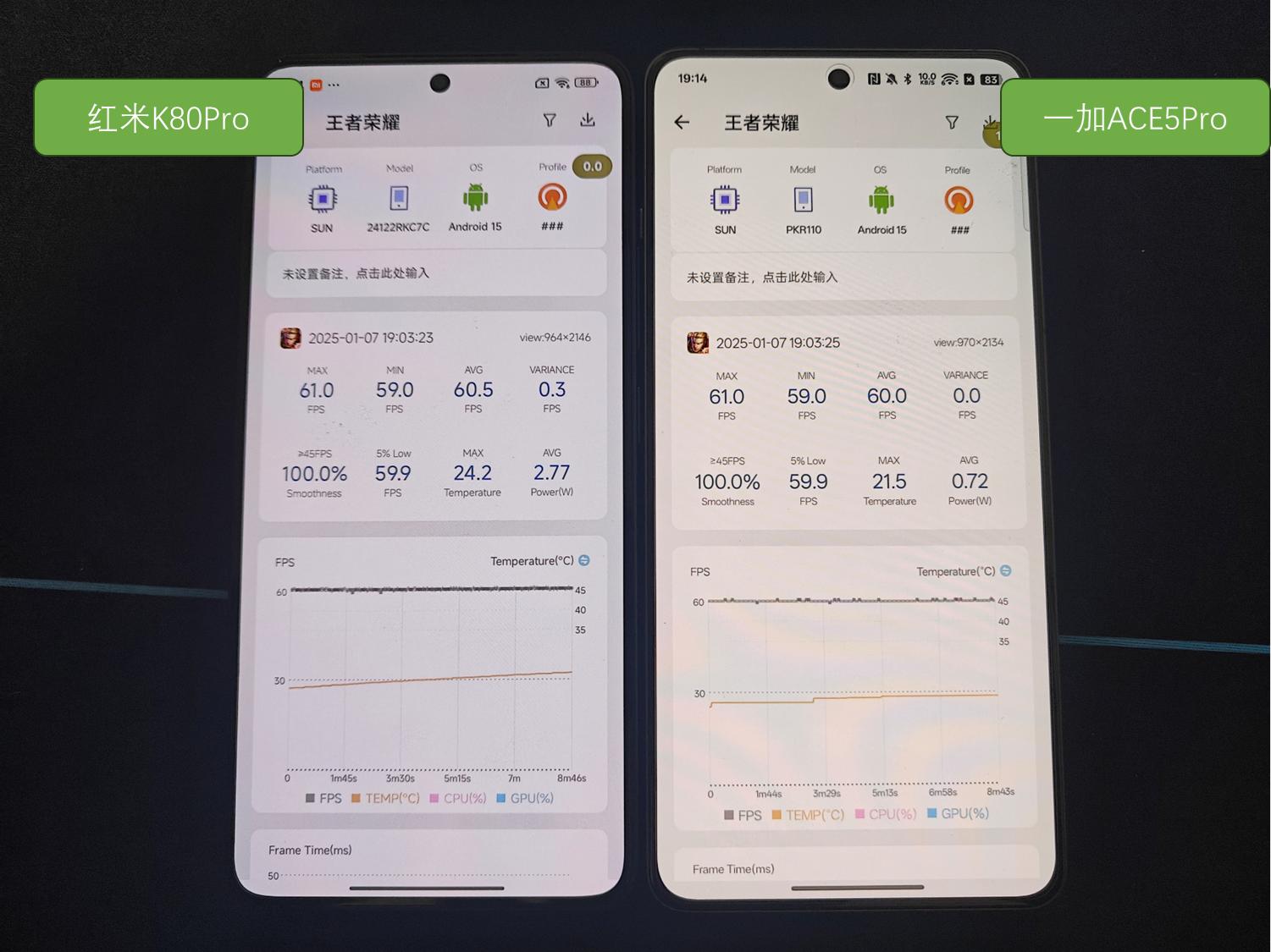 再看看下面的FRAME TIME,也是一加ACE5PRO要更低,明顯是更強力的。