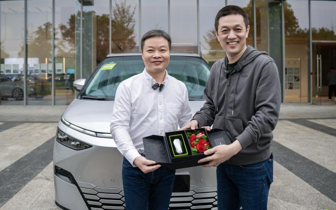 5月11日晚,小鵬汽車官微發文稱,董事長何小鵬兌現“打骨折”賣車的承諾,把小鵬X9親自交到蔚來董事長、CEO李斌手上。