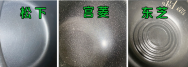 東芝電飯煲米飯有輕微粘鍋的情況,,通過對內膽刮擦30分鐘,發現內膽底部出現了輕微的刮痕,希望商家能夠升級內膽涂層材質。而松下內膽的底部米飯粘鍋嚴重,經過30分鐘的刮擦實驗,內膽的刮痕十分的明顯,說明內膽長期使用涂層有脫落的風險,希望商家可以優化內膽的涂層材質。