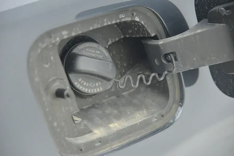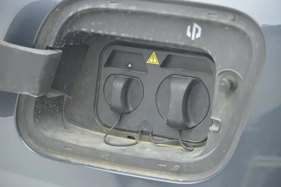 因?yàn)槲覀冞@輛車是增程版本,所以兩側(cè)后翼子板分別安放了快慢充電口和油箱蓋。