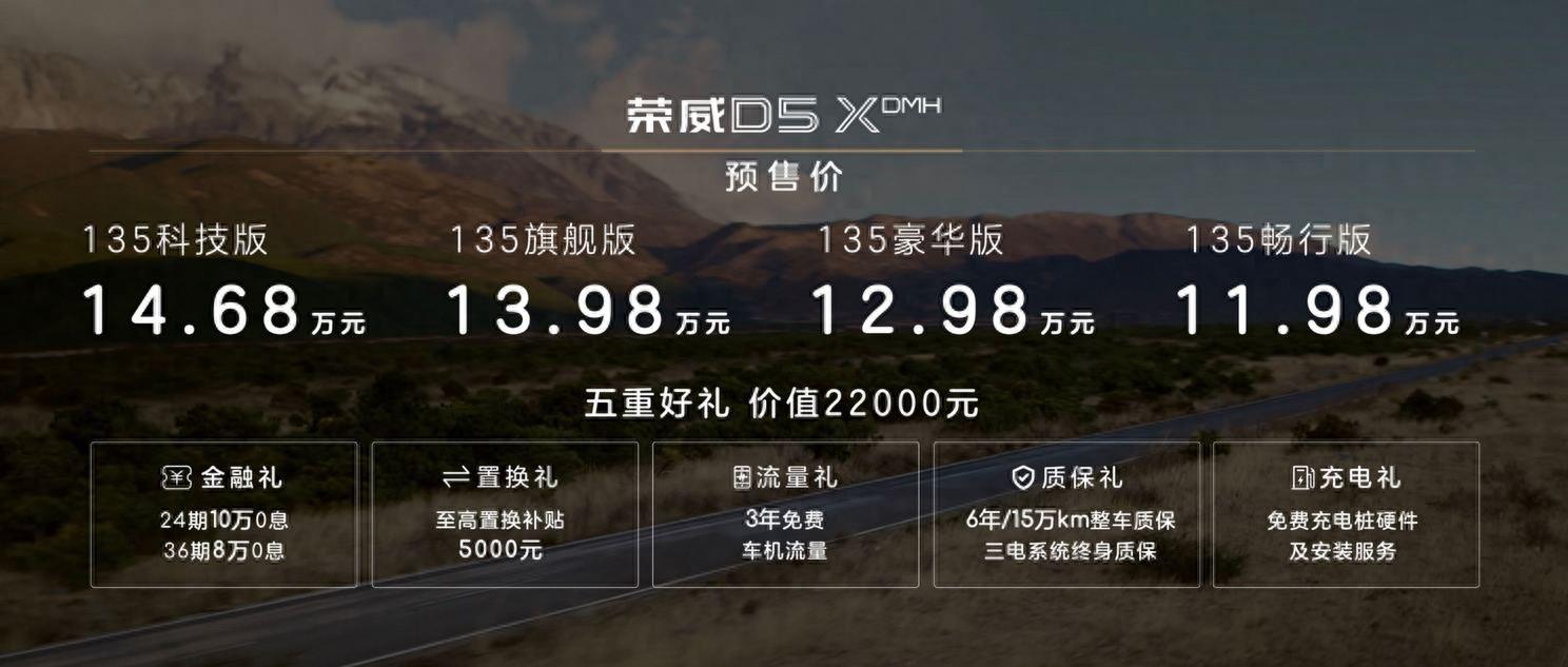 隨著新能源汽車的日益流行,各大車企都在積極推出更具競爭力的車型,比亞迪帶來了宋PLUS DM-i榮耀版,而上汽集團的榮威品牌也不甘落后,近期推出了一款實力強勁的榮威D5X DMH,定位為插混緊湊型SUV,預售價11.98萬-14.68萬,不僅價格親民,其百公里加速6.9秒,CLTC綜合續航里程達1300km,具備一定的吸引力,下面解讀下這款車的產品力表現。