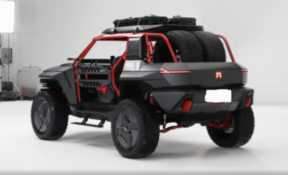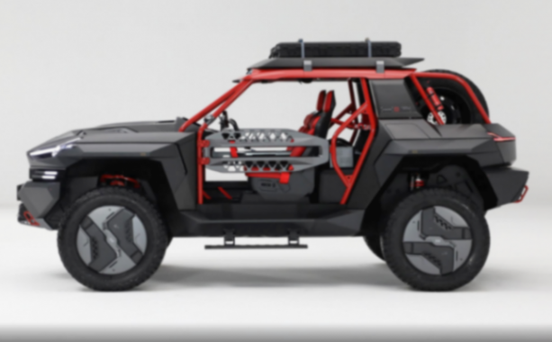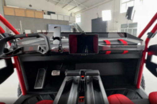車身表面的每一處設計都在顛覆你的認知,車頂配備有探照燈,車尾有越野備胎以及各種越野配置,有助于提升用車實用性。車尾繼續配備可發光的尾標以及紅色拖車鉤,內飾設計布局要多簡約就有多簡約,紅黑內飾營造出一種激情澎湃的乘車氛圍,不規則方向盤造型就像是游戲手柄一般,車內取消一切沒必要的繁瑣裝飾,大部分功能都被集成在懸浮中控屏內。桶形座椅與身體緊密貼合,有助于進一步提升操控樂趣。