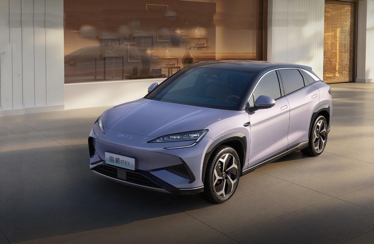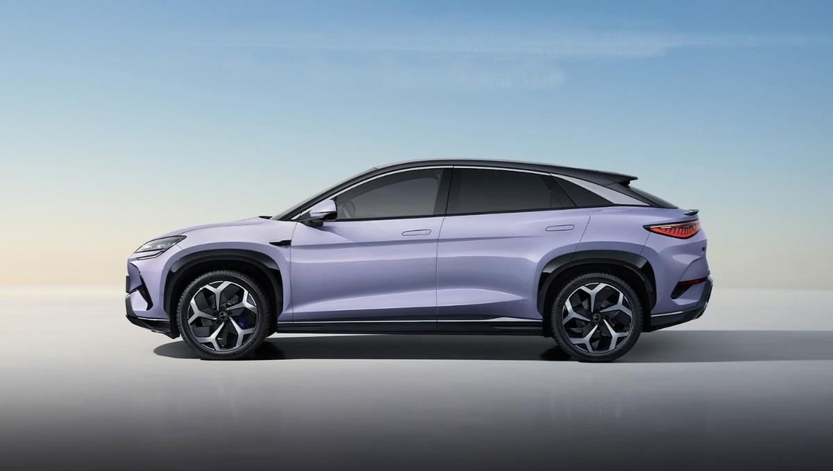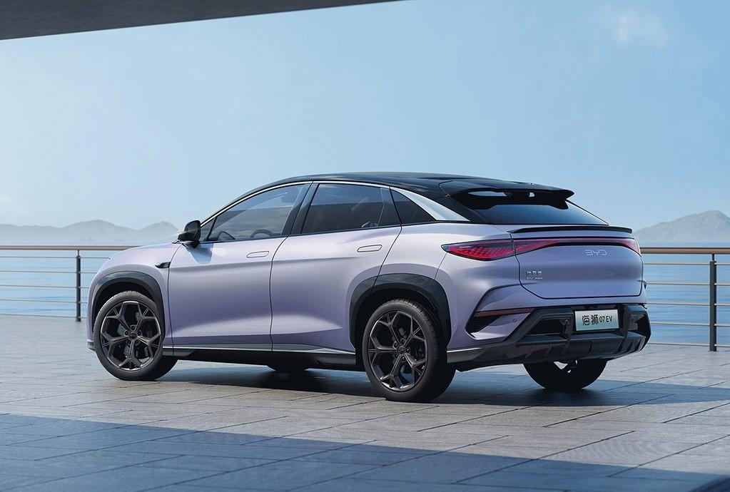 車身側面,新車采用了大溜背的造型,與兄弟車型比亞迪宋L相似,營造出跨界轎跑SUV的動感與時尚。車身尺寸方面,其長寬高分別為4830/1925/1620mm,軸距達到2930mm,后備廂容積為500L,車內乘坐空間和載物能力都很出色。