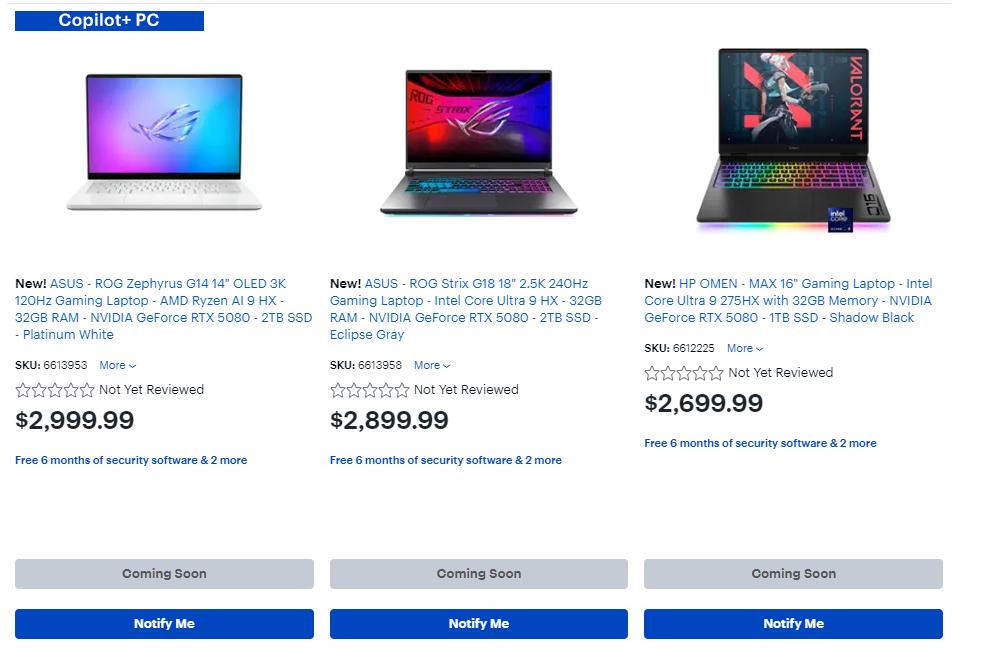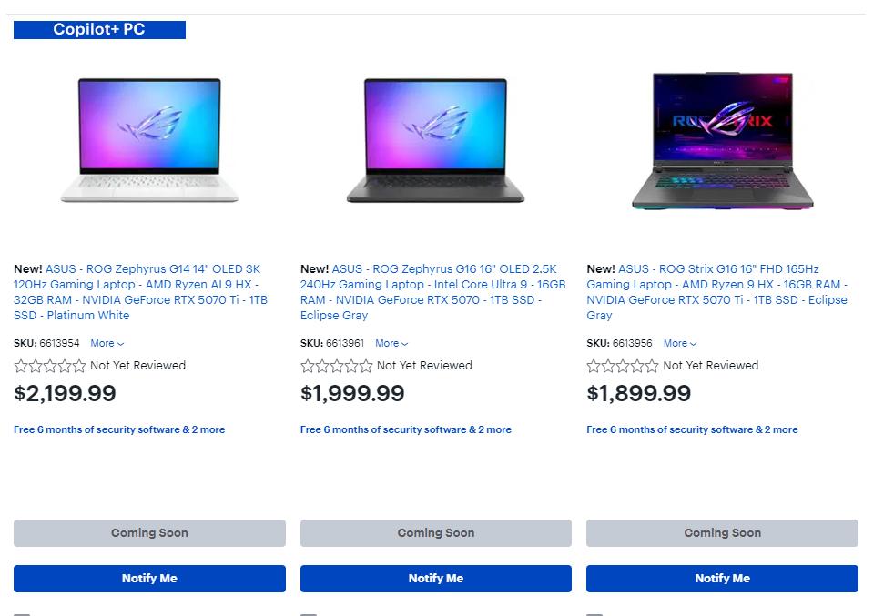 近日,海外零售商百思買(Best Buy)已上架了多款華碩的高端游戲筆記本電腦,并公布了預售價格,可供參考。