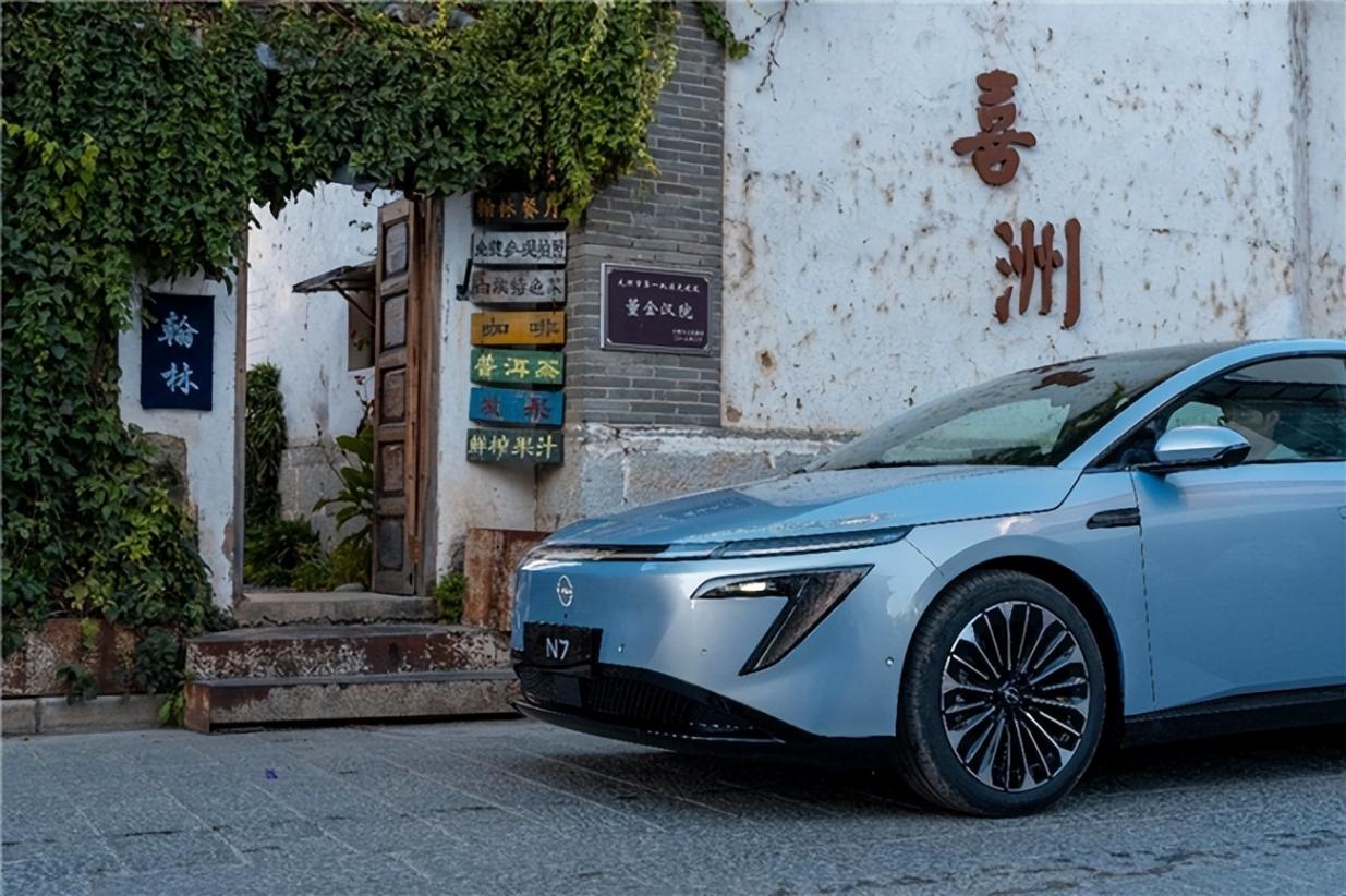 初見 N7,其極具科技感與辨識度的前臉,便能瞬間抓住你的眼球。三段式貫穿 LED 燈帶配合全封閉式前臉,仿若來自未來時空的神秘使者,新能源身份一目了然,科技感撲面而來,仿佛在向世人宣告它走在時代前沿的先鋒氣質。獨特的 “7” 字型分體式大燈,不僅個性張揚,更與車名 N7 相映成趣,仿若車輛的專屬簽名,開在路上,瞬間就能吸引無數目光,讓你輕松化身街頭的 “吸睛王”。底部亮黑色梯形進氣口與微微凸起的前唇相得益彰,在科技感之余,為整車注入了一抹動感活力,仿佛一位躍躍欲試的運動健將,充當著沖鋒的號角。