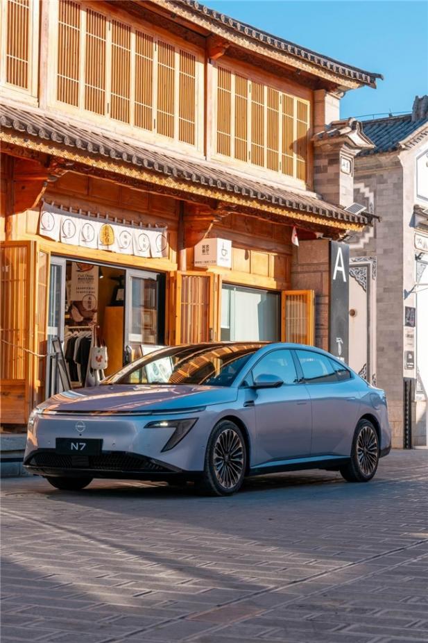 0.618 黃金比例車姿更是點睛之筆,這一神奇比例蘊含著美學的至高奧秘。3 倍輪軸比更是保障了車輛在行駛、轉向、加速時的靈動自如,每一個動作都行云流水,盡顯優雅。N7 的真無框車門,無疑是格調提升的 “神來之筆”。忙碌一天后,你走向停在寫字樓前廣場的 N7,指尖輕觸隱藏式門把手,無三角窗設計讓車門緩緩開啟,動作如絲般順滑,沒有絲毫卡頓,盡顯高雅品味。