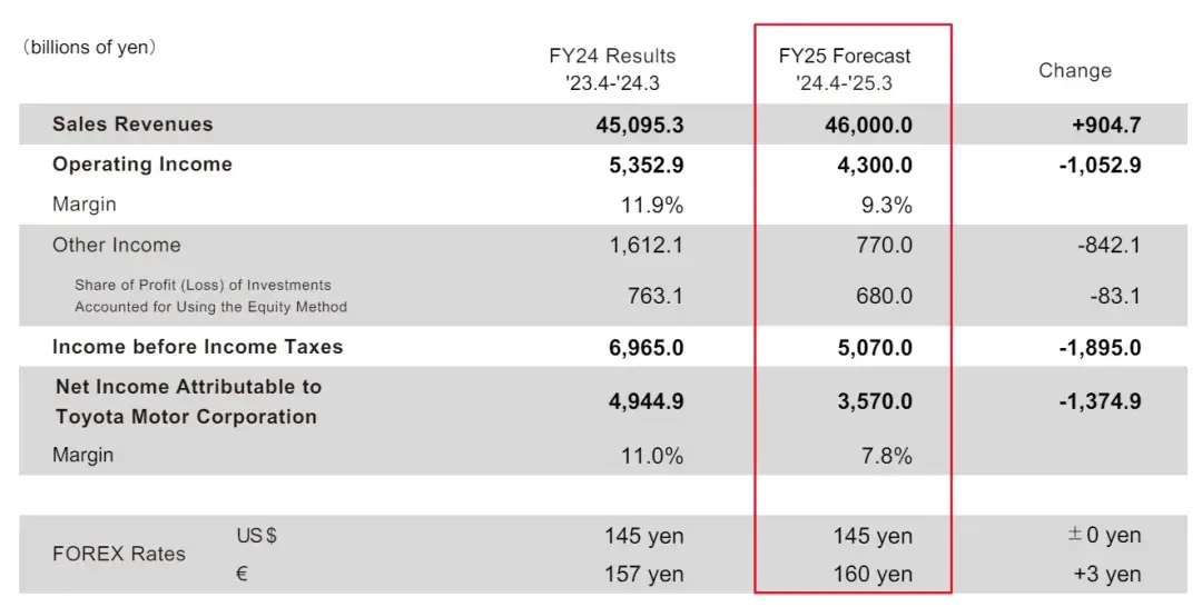 2025財年,豐田汽車給出了相對疲軟預測: