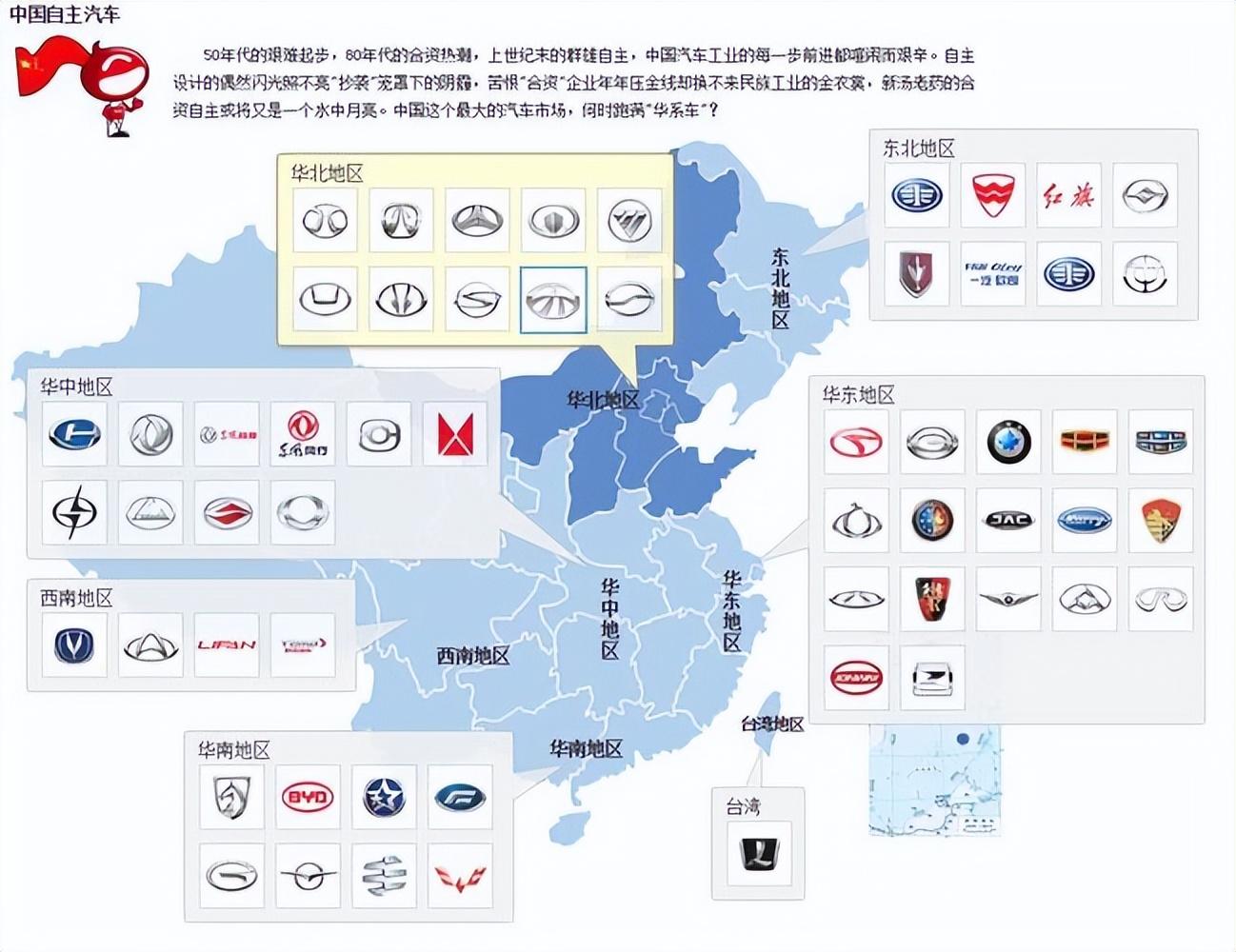 中國有23個省、5個自治區、4個直轄市、2個特別行政區,中國有這么多汽車品牌也就不足為奇了。