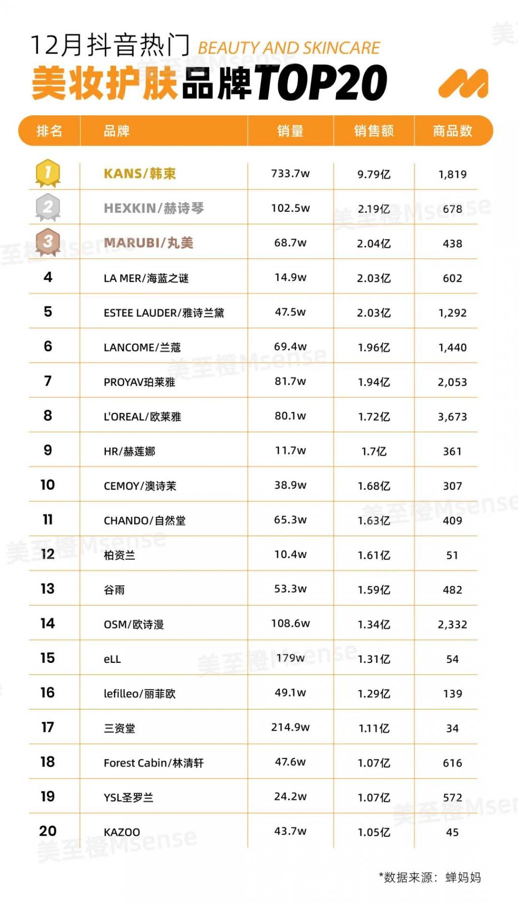 為助力品牌商家在抖音平臺撬動成交爆發,獲取確定性生意增量。美至橙Msense將梳理月度抖音熱門品牌總榜、抖音熱門細分品牌榜等,以期從中探明平臺流量趨勢,解鎖新增長的精準發力點。以下是2024年12月的榜單解析: