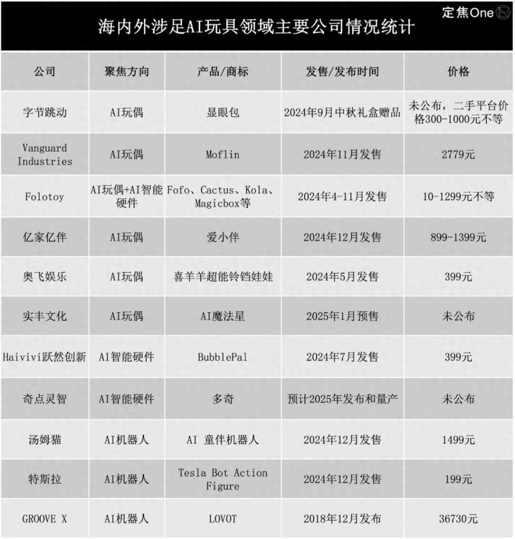 要解答這個問題,我們還得從產(chǎn)品入手。為此,「定焦One」梳理了目前入局AI玩具的公司以及它們產(chǎn)品的主要信息: