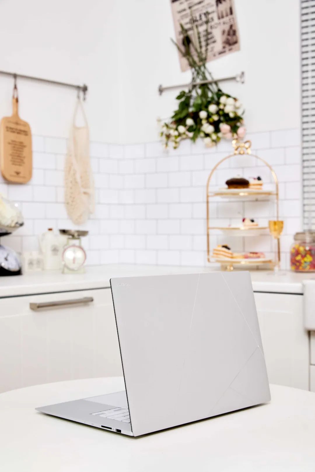 華碩靈耀16 Air擁有雪域白和山嵐灰兩種配色,我們手里這臺是雪域白,優雅靈動,時尚百搭,山嵐灰則相對內斂一些。