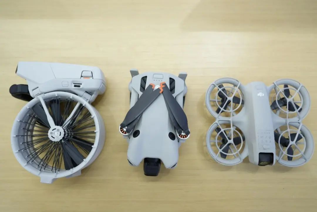 當把DJI Flip展開時,它的體積比NEO和MINI4都要大一些;但一旦折疊起來,它又變得相當小巧,尤其是那個全包圍式的槳葉保護罩,不僅增加了安全性,還讓它在不使用時顯得更加精致。FLIP可以直接在折疊狀態下開機,在展開的情況下換電池也是會自動開機,不過關機的時候就得手動啦。