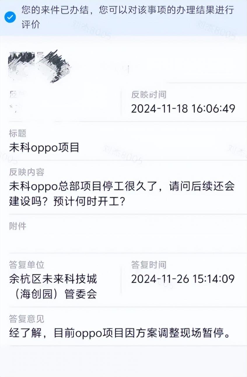 小編曾經在6月底的時候發文稱這個項目施工還在進行!但是有網友留言,這個工地每天就只有零零散散幾個工人在施工!但是就在最近,有網友官方留言詢問這個項目的進展,沒想到官方回復:項目因方案調整暫停!