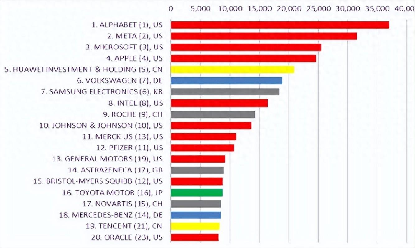 中國近幾年在全球科技研發當中,領先歐盟日本等老牌科技地區,都是高居第二,只排名美國之后,據歐盟數據,中國在2022年的研發投入達到4590億美元,華為等中國科技企業也是不斷投入研發,2022年華為研發投入位居全球前五。