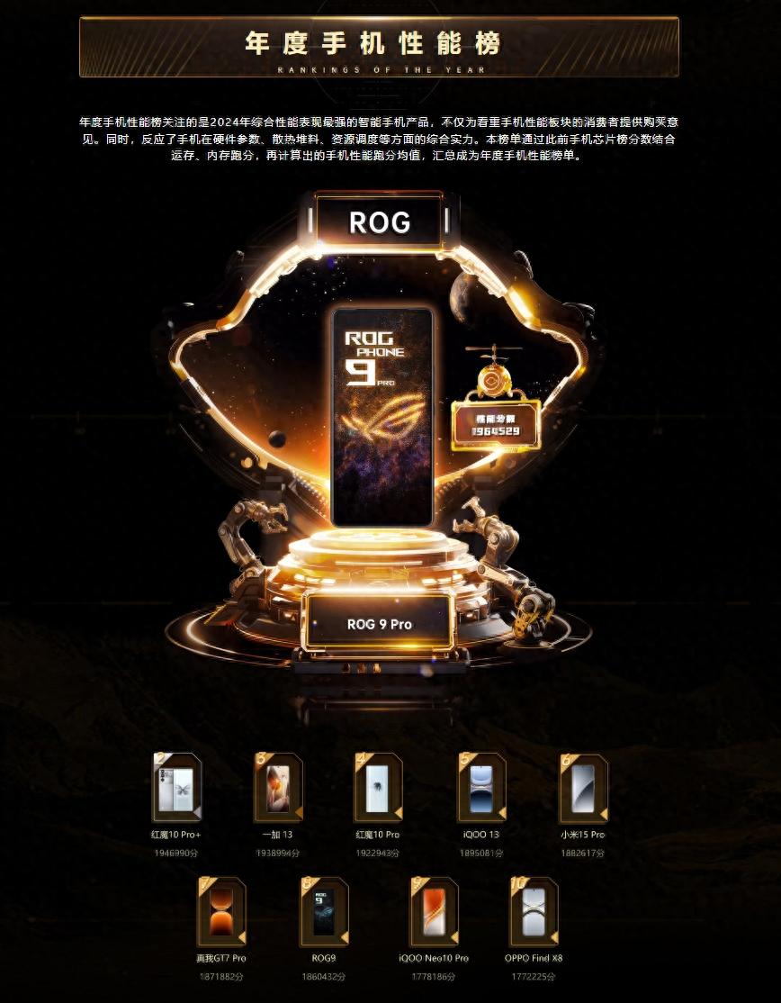 驍龍8至尊版與天璣9400的推出,導致2024各家旗艦手機的性能與能效比均獲得了強大提升,相互間爭奪最強性能的戰況顯得格外焦灼。按照魯大師的介紹,今年的年度手機性能榜關注的是綜合性能表現最強的手機產品,不僅為看重手機性能板塊的消費者提供購買意見。同時,反映了手機在硬件參數、散熱堆料、資源調度等方面的綜合實力。通過此前手機芯片榜分數結合運存、內存跑分,再計算出的手機性能跑分均值,最終匯總成為該榜單。
