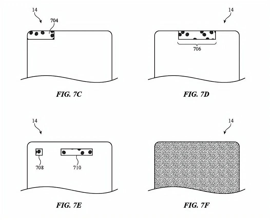 先說說屏下Face ID這個事情,該技術的關鍵在于保證紅外線傳輸能夠精準穿透屏幕,從蘋果的專利圖來看,蘋果將屏幕相關區域的RGB子像素移除,讓周邊像素對空白區域進行補償,這樣就可以兼顧屏幕顯示和紅外線傳輸精度的需求。