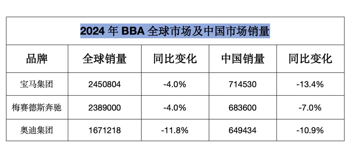 2024年BBA銷量報告:全體下滑,但寶馬險勝
