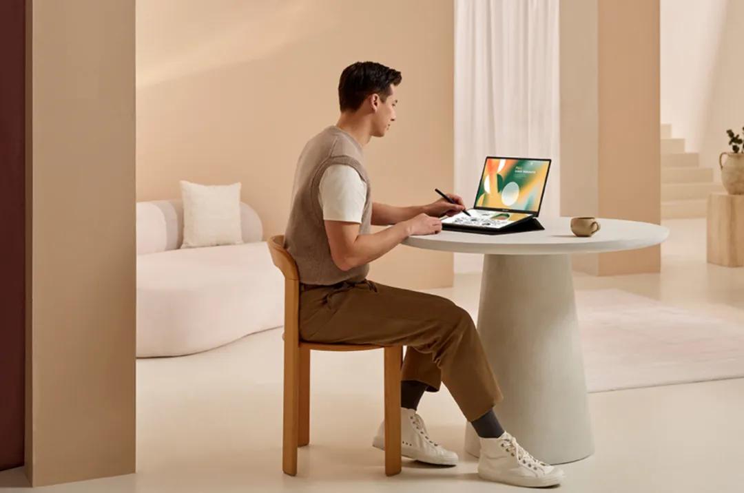 華碩在去年推出的靈耀14雙屏,通過轉軸將兩塊14英寸2.8K OLED觸控屏拼接在了一起,雖然這種設計不如前輩靈耀X Fold的折疊屏更具科技感,但成本和良品率更可控,價格便宜了接近萬元,創新的五大使用形態,也能在更多使用場景下解鎖更高效率,非常適合喜歡灑脫生活,需要隨時記錄靈感的內容創作者們選擇。
