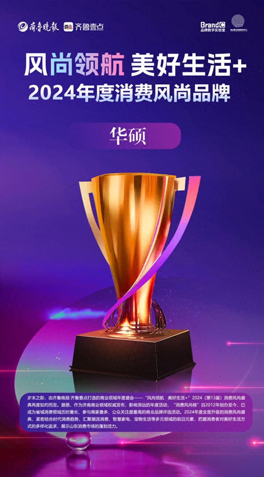 喜報!華碩榮獲“2024年度消費風尚品牌”