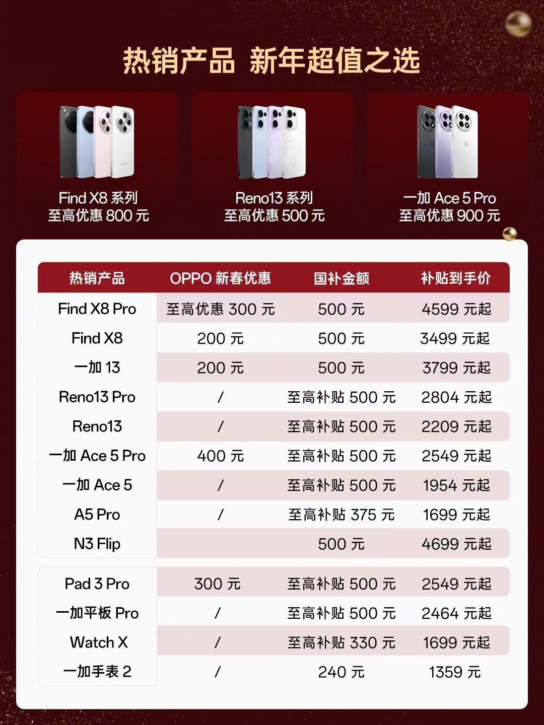 這兩款機型的爆火也從去年延續至今,而且得益于近段時間的國補,還是入手的好時機。像OPPO Find X8系列,至高優惠800元,OPPO Find X8標準版低至3499元、OPPO Find X8 Pro則低至4599元;而OPPO Reno13系列,也低至2209元起,優惠力度還是挺大的。